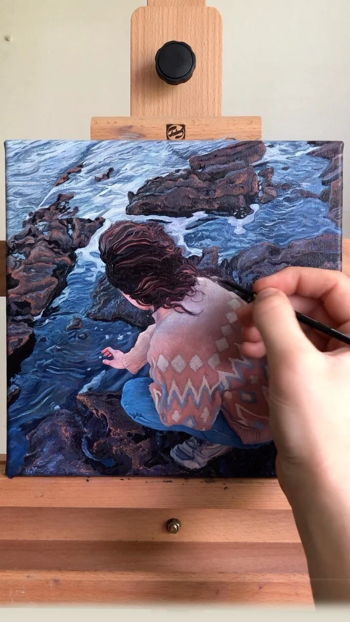 I am particularly intrigued by the phenomenology of place. I’m interested in the way in which our experience of places and the relationships we forge with them exist as an ever evolving, jumbled and reciprocal flow across the material, -immaterial and -emotional realms. I think there’s always a kind of quiet unseen interplay between our phenomenal experience of a place in the moment and our own internal meta-narratives. It is this elusive interaction and fluid dynamic which I am attempting to capture in my paintings.